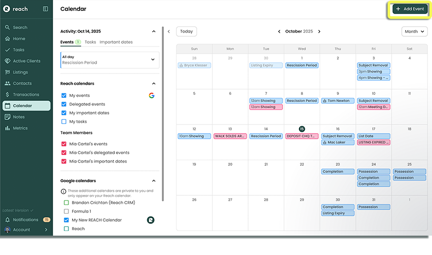 General Events are versatile and can be linked to other items such as a Client, Listing, or Transaction. They’re perfect for meetings, calls, key dates, or anything that doesn’t fit into a showing format.