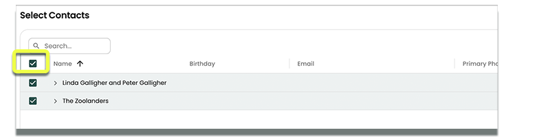 Select which Contacts you wish to import. Select the checkbox in the table header to select all