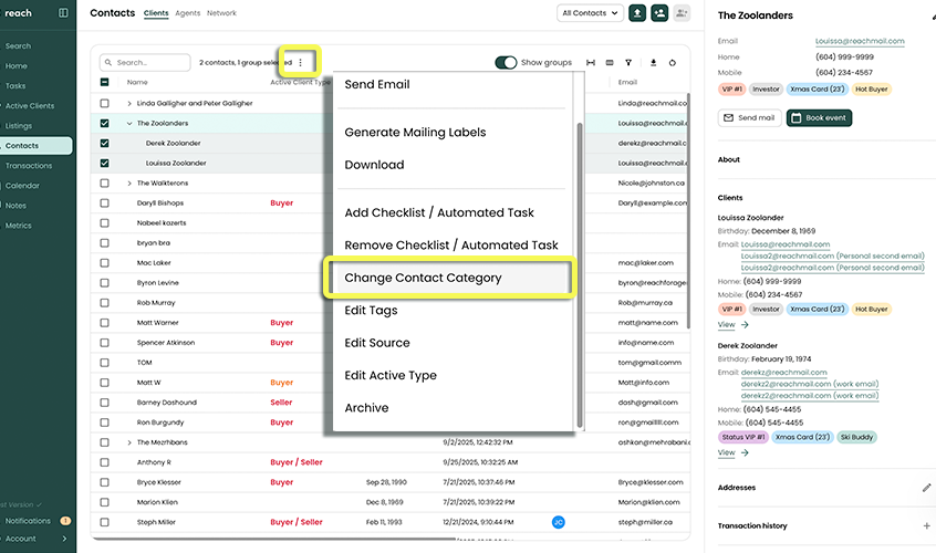 Select the "Client" who you would like to convert to a Network Partner, inside the Contact area (you must give them a check mark next to their name)