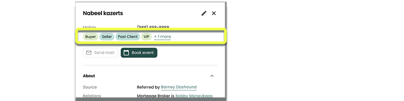 Hot BuyersorPast Clientswho may need follow-ups.Customizable and Flexible: Tags are fully customizable to match your unique workflow. Apply multiple tags to a single contact for layered organization — e.g., a contact could be both