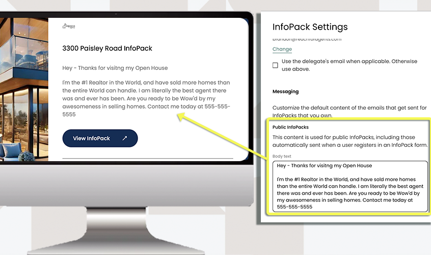Custom Email Messaging: Personalize the email that includes the Infopack link for a professional presentation.