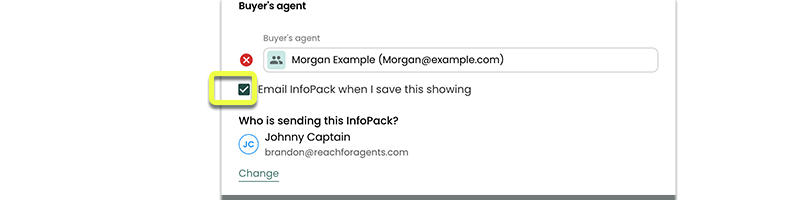There is an additional way that you can send an InfoPack™ upon booking an event (e.g. a Listing Showing). You may want to automatically email each Buyers Agent an InfoPack™ ahead of time to ensure they have read all the important information before viewing the home. We find Buyer’s Agents and Buyers come to the property more educated this way.