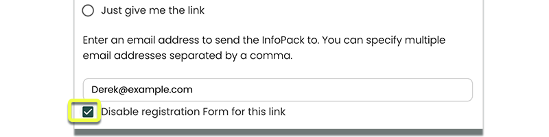 - If you want the recipient(s) to skip the registration form, check Disable Registration Form