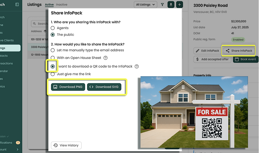 Select this option if you want to embed the QR code directly in your own marketing materials. This QR code links to the public InfoPack™ itself; it does not link to a Open House page.