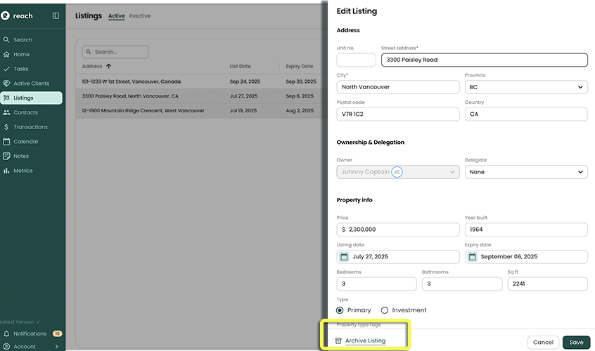 Select the Listing you want to delete (we call this "archive", as we hold onto your Archive data under Settings - just in case you delete something by mistake, you can quickly restore it)