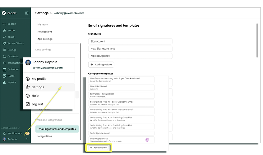 infoNote: Your trusted team at Reach CRM has pre-populated your email templates with valuable pre-written templates already. You may need to scroll to the bottom to find the "+ Add Templates"