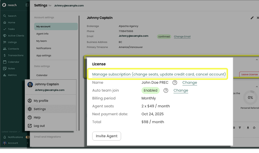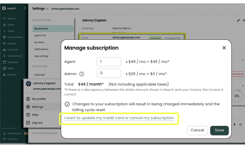 We are sorry to see you go! If you would like to cancel your Reach subscription, follow the steps below.