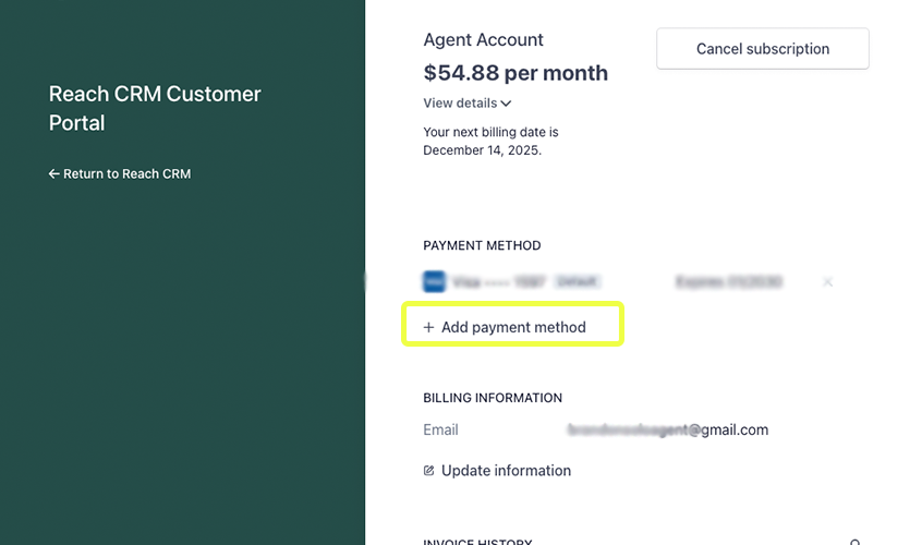 Reach uses Stripe for our credit card processing. To change the credit card in the Stripe portal, follow the steps below: