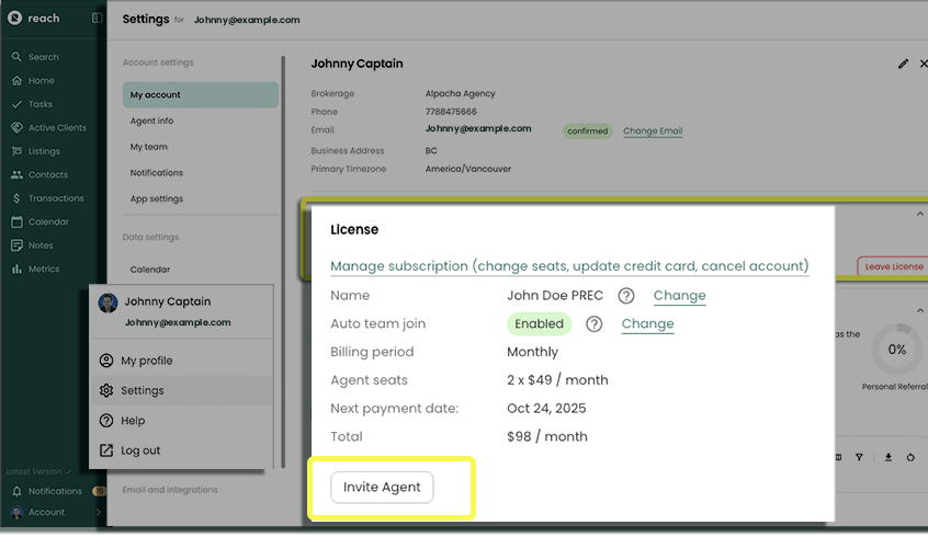 Reach lets you pay for multiple license seats, so you can cover the cost of Reach for your team. You’ll be the license holder, and each user occupies one seat.