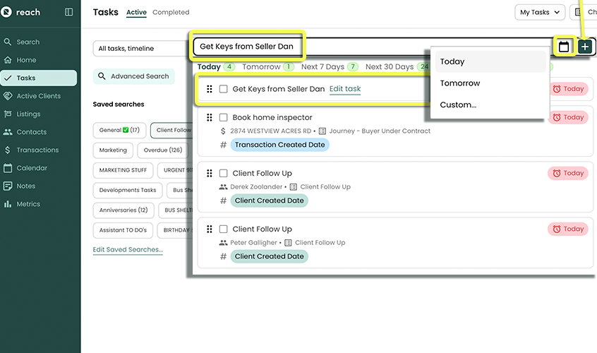 - Link or associate a Client, Listing or Transaction to the Task