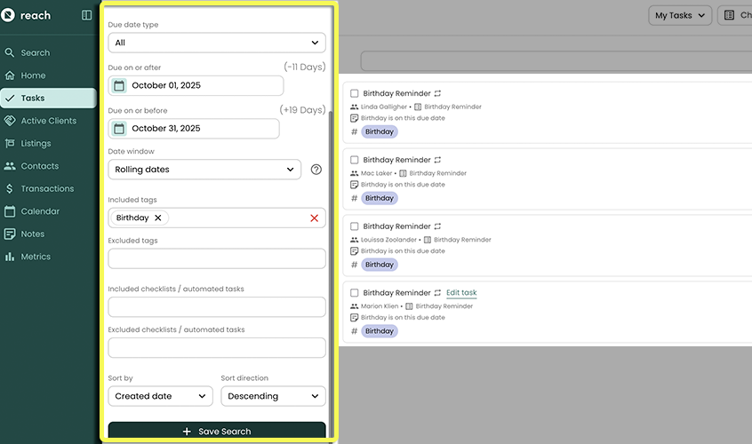Saved Searches have evolved into a powerful way to organize and access your most important Tasks. You can now set the exact filters you want, save them instantly, and return to them anytime — like creating your own customized “buckets” of Tasks.