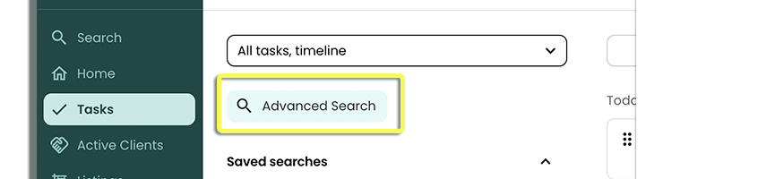 In the dropdown below the Tasks header, click the light green Advanced Search button